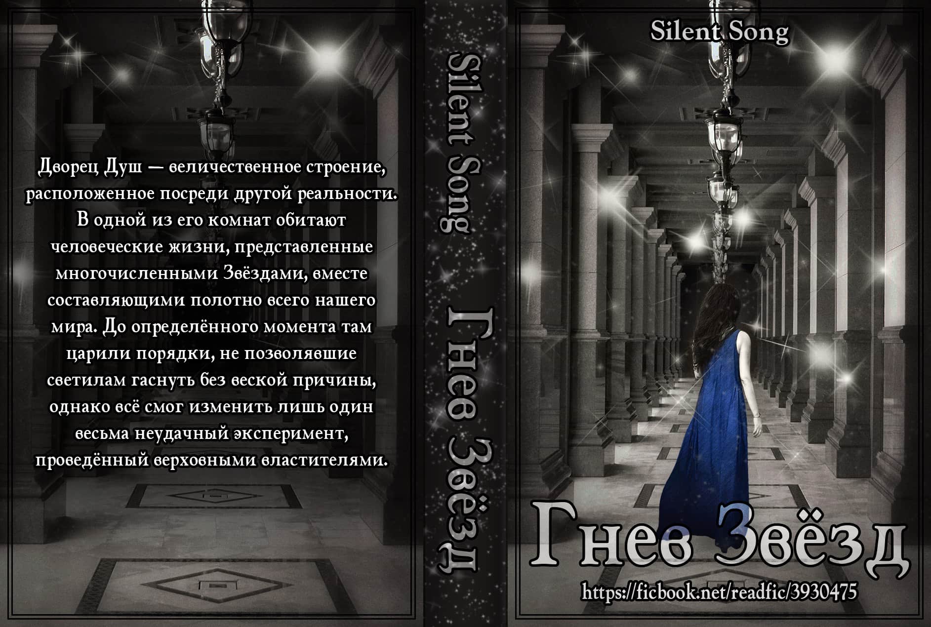 Дворец Душ — величественное строение, расположенное посреди другой реальности. В одной из его комнат обитают человеческие жизни, представленные многочисленными Звёздами, вместе составляющими полотно всего нашего мира. До определённого момента там царили порядки, не позволявшие светилам гаснуть без веской причины, однако всё смог изменить лишь один весьма неудачный эксперимент, проведённый верховными властителями. Метки: смерть основных персонажей, ангст, драма, фэнтези, мистика, смерть второстепенных персонажей. Примечания: Работа, в которой в подробностях описывается злополучный эксперимент — «Убийца Звёзд». Однако «Гнев Звёзд» я, пожалуй, не стану называть её продолжением. Всё-таки здесь совершенно другой сюжет, место действия, герои. Но всё же, если вы так посчитаете, я не стану спорить. Тем, кто не читал вышеупомянутую работу, сначала могут быть несколько непонятны события, описанные в прологе. Однако я постараюсь сделать так, чтобы со временем всё прояснилось. Во второй половине данной работы стиль написания несколько другой, нежели в первой (в особенности он отличен от первой главы и пролога). Обложка от Анны Франк, группа «Два кота — Книга Фанфиков (Ficbook)». Коллаж от автора: https://cs7057.userapi.com/c837325/v837325703/2b2d8/y1DByIvngbA.jpg Группа с моим творчеством: https://vk.com/club78557547 |