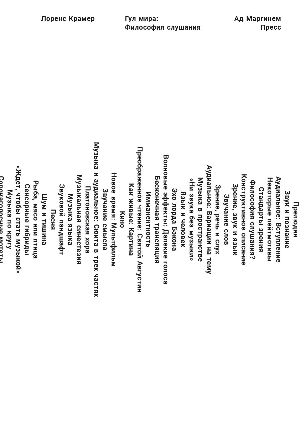Лоренс Крамер (род. 1946) – американский музыковед и композитор, профессор Фордемского университета (Нью-Йорк), видный деятель движения «нового музыковедения» (New Musicology), поставившего своей целью расширить область изучения музыки за счет междисциплинарных исследований звуковой реальности во всем многообразии ее аспектов и взаимодействия с нею человека. Книга Гул мира, вышедшая по-английски в 2019 году, суммирует поиски Крамера в этом направлении, закрепляя расширение поля звуковых исследований новым понятием – аудиальное (audiable), вбирающим в себя куда больше, чем звук, музыка, слышимое, и иллюстрируя его релевантность многочисленными примерами из классической и современной музыки, литературы, философии и других областей культуры. В формате PDF A4 сохранен издательский макет книги |