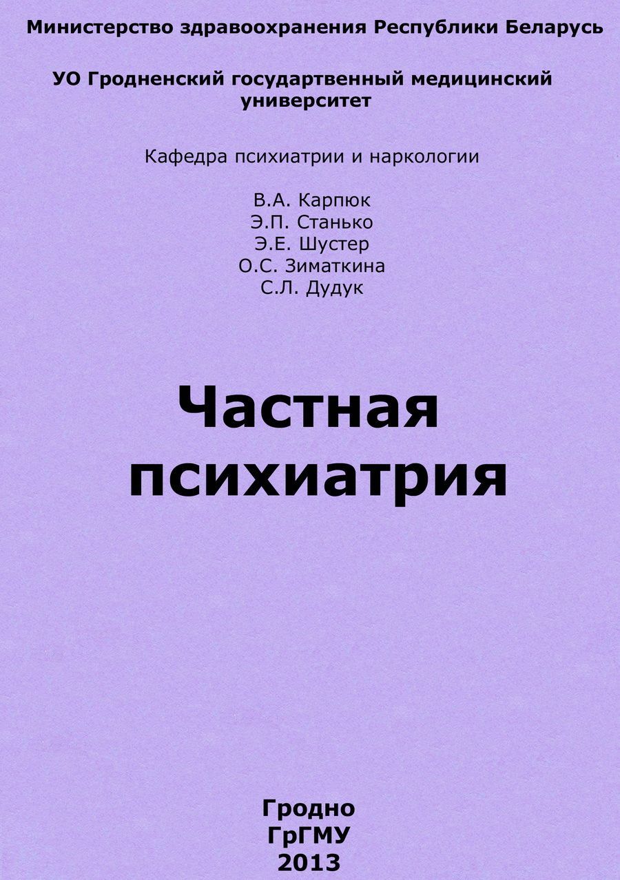 Пособие включает в себя подробное изложение курса лекций по вопросам частной психиатрии в соответствии с типовой программой по дисциплине «психиатрия и наркология» для специалностей 1–79 01 01 Лечебное дело, 1–79 01 02 Педиатрия. В пособии освещены вопросы клиники, диагностики, лечения психических и поведенческих расстройств в соответствии с диагностическими критериями МКБ – 10 и с учетом особенностей детского возраста |
