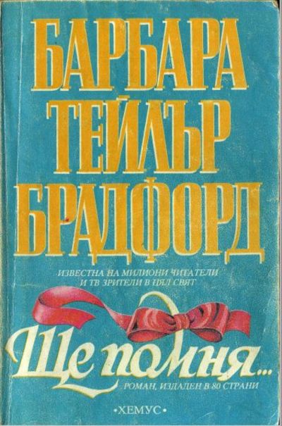 Англичанка по рождение, известната писателка Барбара Тейлър Брадфорд живее и твори в САЩ. Започнала пътя си като журналистка и публицистка, тя се нарежда сред авторите на безспорни бестселъри в световен мащаб, още с първия си роман — „Изключителна жена“ (1979), екранизиран като нашумяла телевизионна поредица, която беше излъчена и у нас. На българския читател са известни и други нейни произведения, но романът „Ще помня…“ (1991) бе отбелязан от литературната критика като най-значимото й постижение досега. Изправена пред трудна за решаване дилема, неговата героиня Никол Уелс, блестяща телевизионна журналистка, чийто професионален дълг я отвежда неизменно до най-горещите точки на планетата, се стреми да спаси дългоочаквания уют на своето щастие от посегателствата на едно минало, застрашително и опасно, трудно преодолимо като страданието, чиято свидетелка е непрестанно… Но нима дори когато е спасение, забравата не е и предателство? |