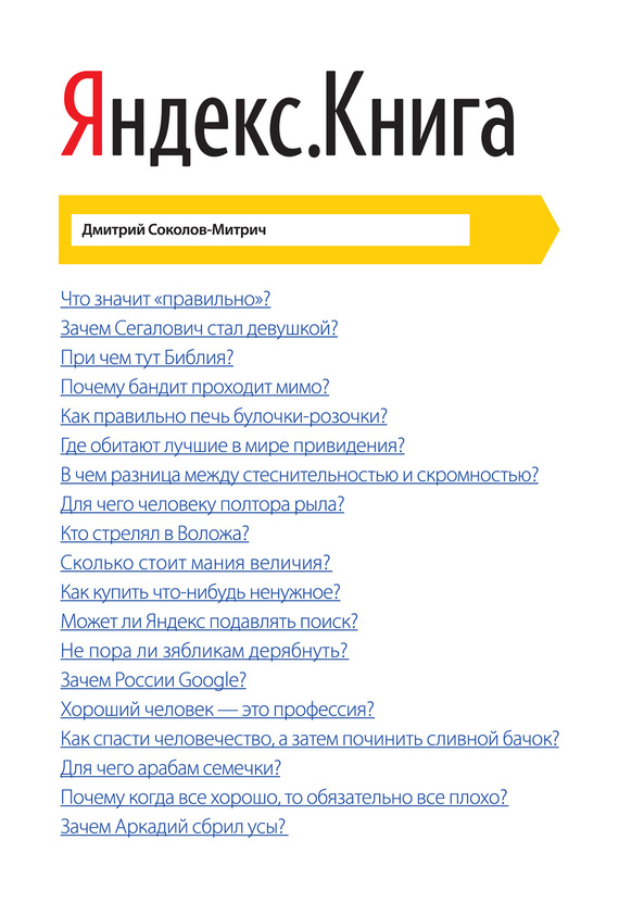 Название книги: Яндекс.Книга Авторы: Соколов-Митрич Дмитрий Владимирович Жанры: nonf_biography, comp_www, popular_business Файл: fb2-506000-511999.zip/511568.fb2 Размер файла: 1,2 МБ Язык: Русский |