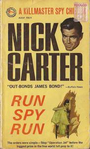RUN from the screaming inferno of a blazing New York airport. RUN to the rescue of a lovely young innocent. RUN from the murderous darkness of a ransacked hotel room. RUN to the welcoming arms of an alluringly mysterious beauty. RUN to the torture room of the sinister Mr. Judas — a chamber of horrors deep beneath the streets of London. RUN to stop the gleaming overseas jet from becoming a huge silver bomb and giving the man with the steel hand a stranglehold on the free world. RUN SPY RUN!!!!! |