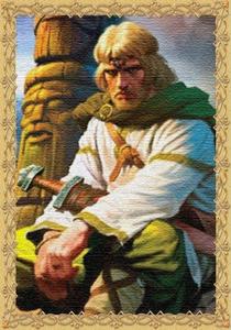 «— Это славно, князь Буривой, что ты именно на меня, а не на кого другого попал! — воскликнула она голосом каркающим. — Я ж Маргоны сестра старшая, Марлуша. И колдуна Мардуха ужасного тоже я сестра. Да только не любят они меня и мною помыкают, за ровню себе мою особу не считают, поскольку я людям недужным всегда помогаю и лечу хворобы их злые зельями всякими травными… И поведала она витязю удивлённому, что это, оказывается, злая Маргона её так колодкою наказала за то, что она людишек местных, Маргоною недавно отравленных, на ноги живо поставила. Три месяца долгих и ещё вдобавок три дня ей в таком положении жалком находиться предстояло, да спасибочки Бурше удалому, что он туточки через три денька уже оказался и избавил старую ведунью от мук от этих ужасных… Ну а поутру, после того, как поспал наш князюшка в избушке-развалюшке сном праведника, сунула ведьма носатая ему в руки суковатую палку и таково ему наказала: — Сия палочка, Буривой, не простая. Бери её в руки, сокол мой ясный, да по дорожке вон той и ступай. Палка сама тебя к Маргоне путь укажет. Да гляди там в оба, ибо сестра моя хитра и коварна, так что держи ушки свои торчком, а не то деньки твои на белом свете враз позакончатся!» |