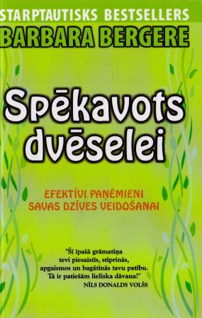Barbara Bergere Spēkavots dvēselei Efektīvi paņēmieni savas dzīves veidošanai Mēs esam tas, ko mēs domājam. Šajā vienkāršajā, toties nozīmīgajā grāmatā Barbara Bergere parāda, kā kontrolēt apziņas spēku, lai radītu tādu dzīvi, kādu vēlamies. Viņa piedāvā ātri iedarbīgas metodes veselības problēmu, finansiālu grūtību un citu dzīves sarežģījumu atrisināšanai. Dodiet savai dvēselei pozitīvo impulsu un sirdij tonizējošu līdzekli mainiet domāšanu, un jūs pārvērtīsit savu dzīvi…. Izlemiet, kādu dzīvi vēlaties, vizualizējiet un pasludiniet to, ticiet savām domām, paļaujieties uz tām, un jūs aptversit, ka jūsu jaunā dzīve ir sākusies. Tas notiks daudz ātrāk, nekā domājat. "Aizraujoši!… Paņem šo grāmatu un sāc lasīt jebkuru nodaļu, jo katrā no tām ir iespaidīga gudrība, kas palīdzēs radikāli mainīt ikviena dzīvi!" Copyright ©Barbara Weitzcn Berger, 1995, 2002 All rights reserved ISBN 0-00-716514-5 Translation copyright ©2004 No angļu valodas tulkojis Normunds Pukjans Barbara Bergere Spēkavots Dvēselei 2. izdevums Redaktore Zane Seņkova Apgāds Zvaigzne ABC, SIA, K. Valdemara ielā 6, Rīgā, LV-1010. Red. nr. S-902. A/s “Poligrāfists”, K. Valdemāra ielā 6, Rīgā, LV-1010. © Tulkojums latviešu valodā, Normunds Pukjans © Tulkojums latviešu valodā, Apgāds Zvaigzne ABC 2010 Noskanējis grāmatu un failu izveidojis Imants Ločmelis imantslochmelis@inbox.lv Veltīta Timam, Markam un Robinam |