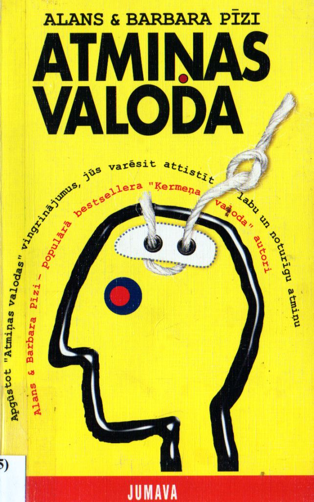 Alans @ Barbara Pizi Atmiņas valoda Kā iegūt spožu atmiņu 48 minūtēs No angļu valodas tulkojusi Lenvija Sīle Pasaules bestsellera "Ķermeņa valoda" autors Alans Pīzs savā jaunajā darbā "Atmiņas valoda" apliecina pieņēmumu: "Nekas prāta darbības jomā neieņem tik svarīgu vietu kā atmiņa." Daudziem pieaugušajiem un bērniem ir dabas dota lieliska atmiņa, tomēr tikai retais ir atklājis vienkāršo noslēpumu, kā šīs apbrīnojamās spējas pienācīgi izmantot. Apgūstot "Atmiņas valodas" vingrinājumus, jūs varēsit attīstīt labu un noturīgu atmiņu. Atmiņas valoda ir lielu panākumu atslēga - oriģināls un spēcīgs ierocis pret aizmāršību. Šī gramata atklāj, kā: • iegaumēt sarakstu tā, lai nekad to neaizmirstu; • kā atsaukt atmiņā informāciju arī jauktā kārtībā; • kā likt lietā radošu iztēli; • kā iegaumēt skolā, darbā vai personiski sastādītu sarakstu. JUMAVA Karenas Berbutis ilustrācijās Andra Zirnīša vāka mākslinieciskais noformējums www./umava. lv Izdevējs — apgāds "Jumava", Dzirnavu ielā 73, Rīga LV 1011. © Apgāds "Jumava"2004, izdevums Noskannējis grāmatu un FB2 failu izveidojis Imants Ločmelis latviešu valodā, 2004 © Lenvija Sīle, tulkojums latviešu valodā, 2004 © Andris Zirnītis, mākslinieciskais noformējums, 2004 Veltīts Jasmīnei, Ādamam Bilam un Rejam |