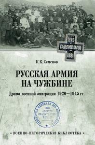 Новая книга К. К. Семенова «Русская армия на чужбине. Драма военной эмиграции 1920–1945 гг.» рассказывает о трагической истории наших соотечественников, отправившихся в вынужденное изгнание после Гражданской войны в России. Используя многочисленные архивные документы, автор показывает историю русских солдат и офицеров, оказавшихся в 1920-е годы в эмиграции. В центре внимания как различные воинские организации в Европе, так и отдельные личности Русского зарубежья. Наряду с описанием повседневной жизни военной эмиграции автор разбирает различные структурные преобразования в ее среде, исследует участие в локальных европейских военных конфликтах и Второй мировой войне. Издание приурочено к 95-летию со дня создания крупнейшей воинской организации Русского зарубежья – Русского Обще-Воинского Союза (РОВС). Монография подготовлена на основе документов Государственного архива Российской Федерации, Российского государственного военного архива, Архива ГБУК г. Москвы «Дом русского зарубежья им. А. Солженицына», периодики Русского зарубежья и других источников |