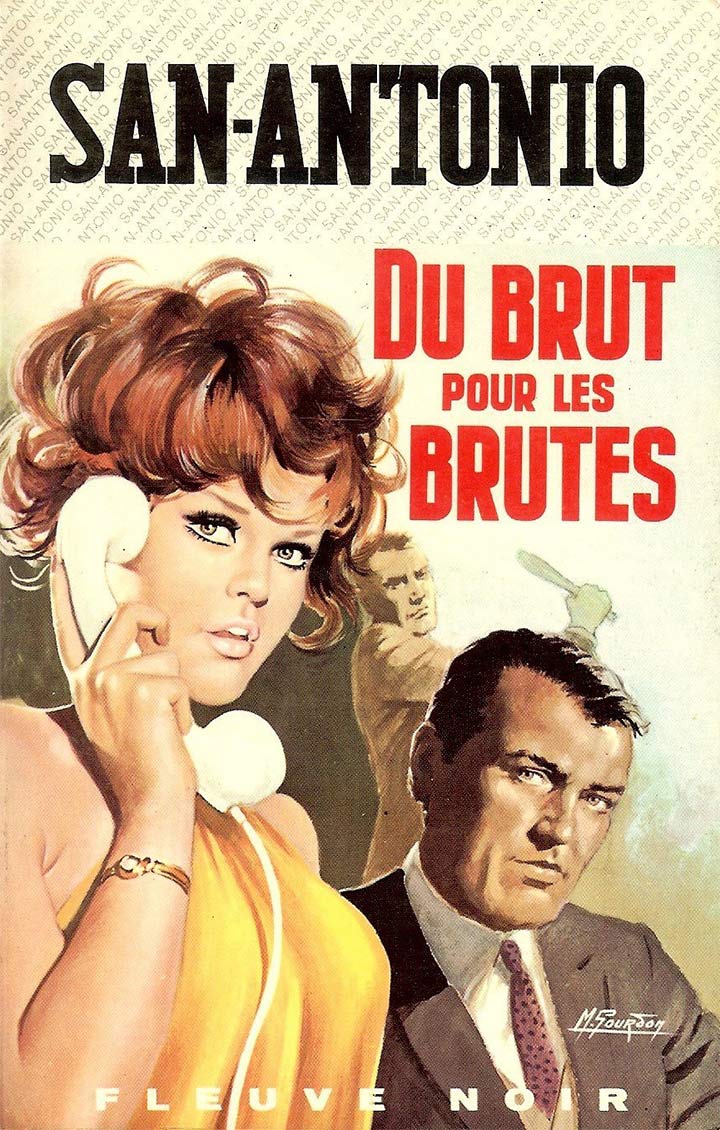 Boris Alliachev, vous connaissez ? Espion international… Recherché dans une tripotée de pays… Enfin le genre de mec que tout flic normalement constitué rêve d'agrafer à son palmarès ! Figurez-vous que je l'ai précisément sous les yeux, en ce moment… Il est assis dans un restaurant russe et il jaffe du caviar comme un qui aurait la conscience tranquille et le larfouillet bourré. Seulement voilà qu'un pastaga démarre dans les parages : un jules, laid comme un dargif de singe, entreprend de dérouiller sa poule, une ravissante môme de vingt berges. Mais ce n'est pas le genre de chose qu'on fait devant S. -A, pas vrai ? Alors je sors mon uppercut des grands jours… Et pendant la bagarre, le Boris, lui, il prend la tangente ! Vilaine affure, les gars, mais cette brute de S. -A. n'a pas dit son dernier mot ! |