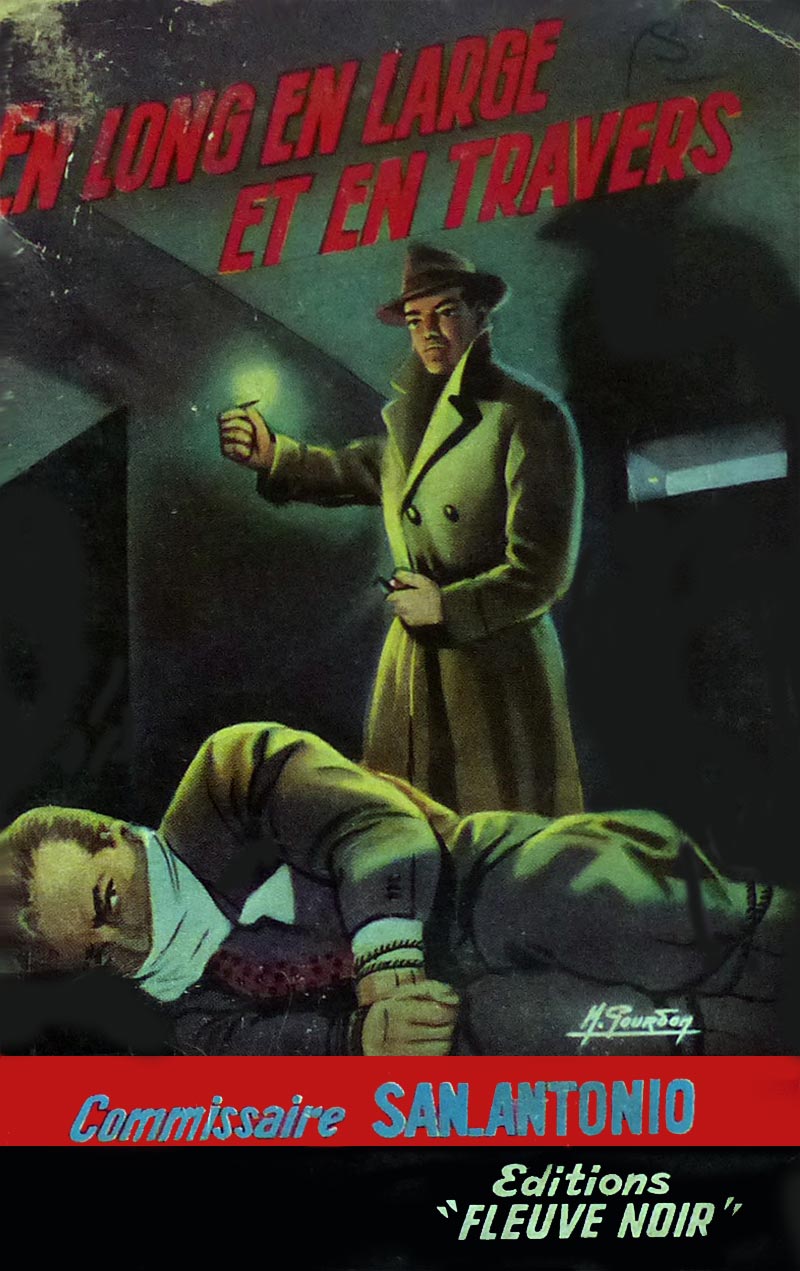 A l'époque du bienheureux Al Capone, l'Amérique connut « la guerre des gangs ». Le conflit a fait moins de victimes que celui de 14–18, toutefois, il a été sévère. En ce temps-là, quand tu dérapais sur un trottoir, c'était dans une flaque de sang plutôt que sur une peau de banane ! Y avait des flingueurs partout : dans les restaurants, les cinoches, les églises, les pissotières et les rues, surtout ! On croyait ces fantaisies révolues. Fume, mon grand, fume ! Voilà que, sous une autre forme, tout recommence. En gigantesque ! En omniprésent ! En plus qu'impitoyable ! Le « Consortium », ça s'appelle, cette vérolerie. Et moi, le Sana-joli, avec mon courage démentiel et ma belle bitoune toujours prête, je m'attaque à cette hydre ! Malheur de mes os ! A compter de cet instant, il m'arrive les pires trucs et je marche sur un tapis de cadavres ! Tout s'écroule autour de ma pomme. Apocalypse intégrale ! La mort, l'horreur, la folie ! Le bout du bout, quoi ! Âmes sensibles s'abstenir ! Quant aux autres, prenez le pied de votre vie ! C'est ma tournée |