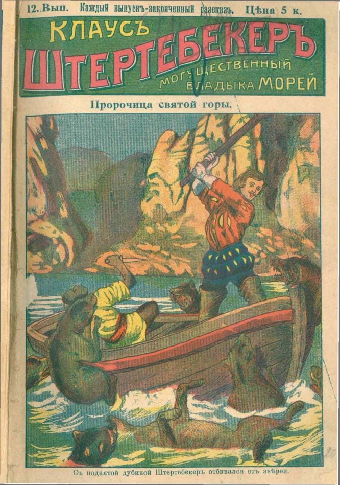 Клаус Штёртебекер — легендарный пират XIV века, один из предводителей братьев-витальеров (пиратов Балтийского и Северного морей), ставший фольклорным персонажем в качестве прототипа Робин Гуда. В 1909 году (согласно библиографическим данным Российской национальной библиотеки) в Российской империи публиковалась серия анонимных бульварных повестей о приключениях Клауса Штертебекера |
