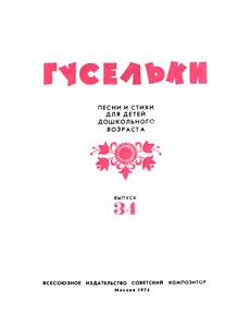 Название книги: Гусельки. Выпуск 34-1974 Авторы: Беляев Михаил Александрович, Садовский Михаил Рафаилович, Орлов Владимир Натанович, Ладонщиков Георгий Афанасьевич, Андреева Галина Петровна, К Владислав , Сырыщева Татьяна Яковлевна, Векшегонова Идея Васильевна Жанры: music, child_verse, notes Файл: fb2-782587-784417.zip/783920.fb2 Размер файла: 3,0 МБ Язык: Русский |