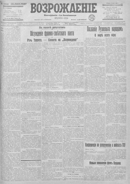 Задуманная как первая в серии, эта статья о немецком национал-социализме была опубликована 17 мая 1933 г. в № 2906 парижской эмигрантской газеты «Возрождение», но продолжения не последовало |