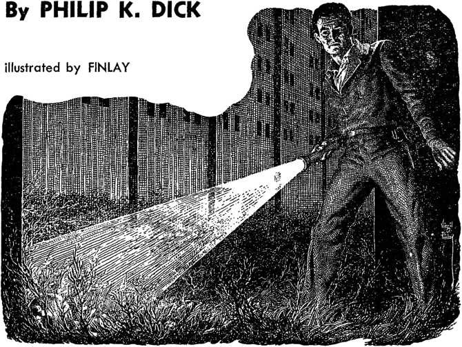 The theme of “the man who played God” has been used many ways in many stories, but never with more tense and chilling effect than in this tight little yarn by the very able Mr. Dick. You'll like it, we're sure |