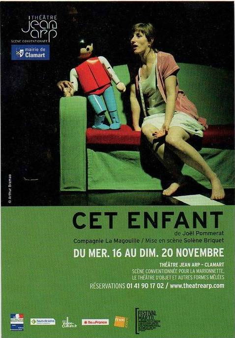 "Этот ребенок" родился от встреч Помра и его актеров с несколькими женщинами из бедных пригородов в Нормандии. Разговаривали о том, что такое современная семья и что значит быть родителями. Потом Жоэль Помра переработал эти беседы на свой лад — и получилась пьеса, состоящая из череды современных семейных конфликтов. Напряжение, изначально присущее отношениям между родителями и детьми, в этом сочинение доведено до крайности |