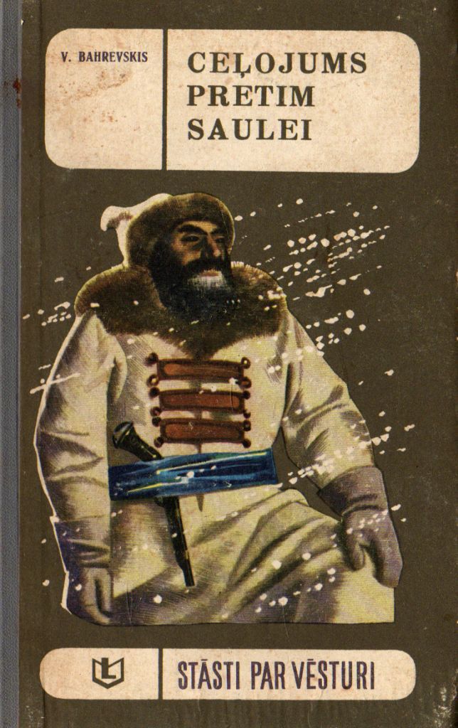 Bahrevskis Vladislavs Anatoļjevičs Ceļojums pretim saulei Stāsti par vēsturi Vēsturisks stāsts Šī grāmata vēstī par pirmo ceļotāju krievu kazaku Semjonu Dežņevu, kurš, izkļuvis no Ledus okeāna Klusajā okeānā, pirmais pierādīja, ka Āzija un Amerika ir divi patstāvīgi kontinenti. Viņa vārds liekams līdzās Kolumba un Magelāna vārdiem. Ar pirmajām lappusēm nokļūstam XVII gadsimtā, laikmetā, kad dzīve ritēja gausi un noslēgti. Vladislavs Bahrevskis to parāda ar valodas līdzekļiem. Taču pēcāk stāstījums kļūst raitāks, darbība sāk risināties straujāk. Sis stāsts ir kā senatnīgs šķirstiņš, kurā atrodam nostāstus par Krievijas tautu pagātni, spilgtas sadzīves ainas, Ziemeļu tautu un cilšu teiksmas un leģendas; ar šim tautām un ciltīm bija ticies Semjons Dežņevs — drosmīgais un vīrišķīgais kazaks. Tulkojis Oskars Kalnciems Vāku zīmējis A. Stankevičs Vinjetes Zīmējis N. Vorobjovs Noskanējis grāmatu un FB2 failu izveidojis Imants Ločmelis |