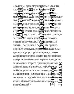 Книга всемирно известного американского дизайнера и педагога В. Папанека о задачах и роли дизайнера в современном мире, об этике дизайна о новых принципах и методах проектирования, о дизайне как универсальном виде человеческой деятельности, интегрирующем в себе самые разные знания, а также о новой системе подготовки дизайнеров. Книга переведена более чем на двадцать языков, на русском языке издана впервые |