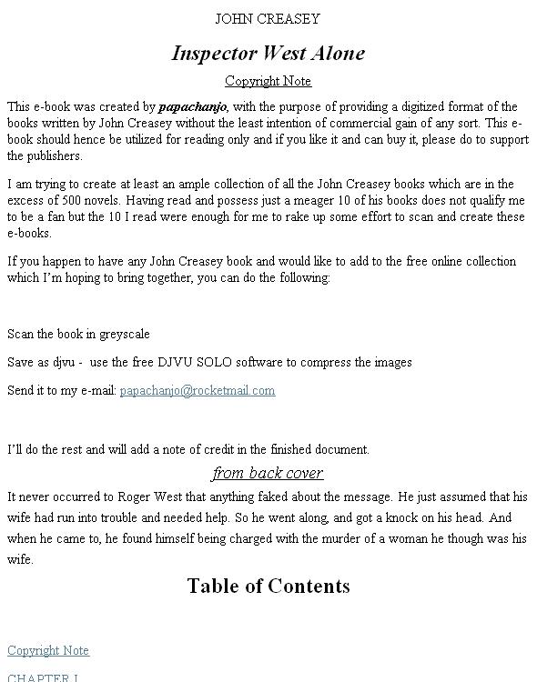Название книги: Instead of Evidence Авторы: Стаут Рекс Жанры: det_classic Серии: Nero Wolfe No в серии:15 Файл: fb2-561000-564999.zip/561100.fb2 Размер файла: 274,7 КБ Язык: Английский |